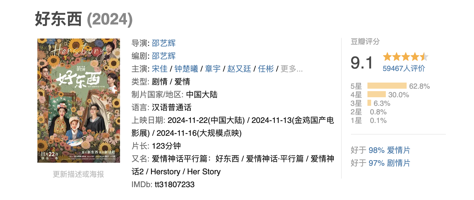 况且最炸裂的是宋佳不啻是在电视剧圈子里爆了,最近宋佳还有一部主演的电视剧《好东西》上线,当今评分也达到了惊东说念主的9.1分。