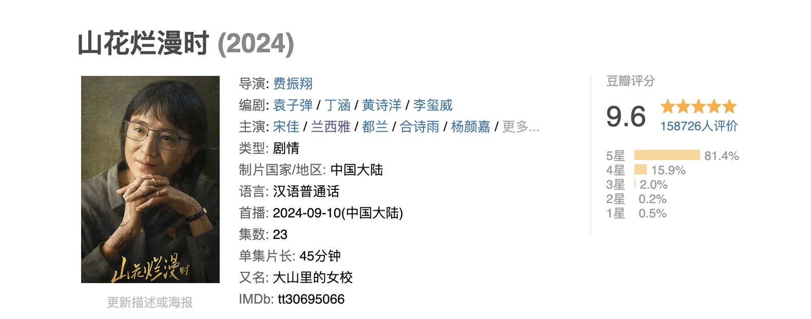 但是有少量我是不祥详情的,那便是无论是多炸裂的电视剧,王人无法撼动《山花烂漫时》这部剧王的地位了!