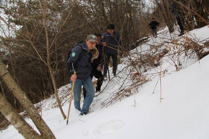 他蓝本是村里兽医,如今在这里一边护林,一边帮着救治受伤的野天真物。天色阴千里千里的,像又要下雪。他们继续往前走,猴健赖在谭明宽肩上,一只叫“陆虎”的黄狗在雪地里撒欢,它一时向林子长远跑去,一时又回到他们三东说念主中间,吓得林子里的野天真物恐忧万分。