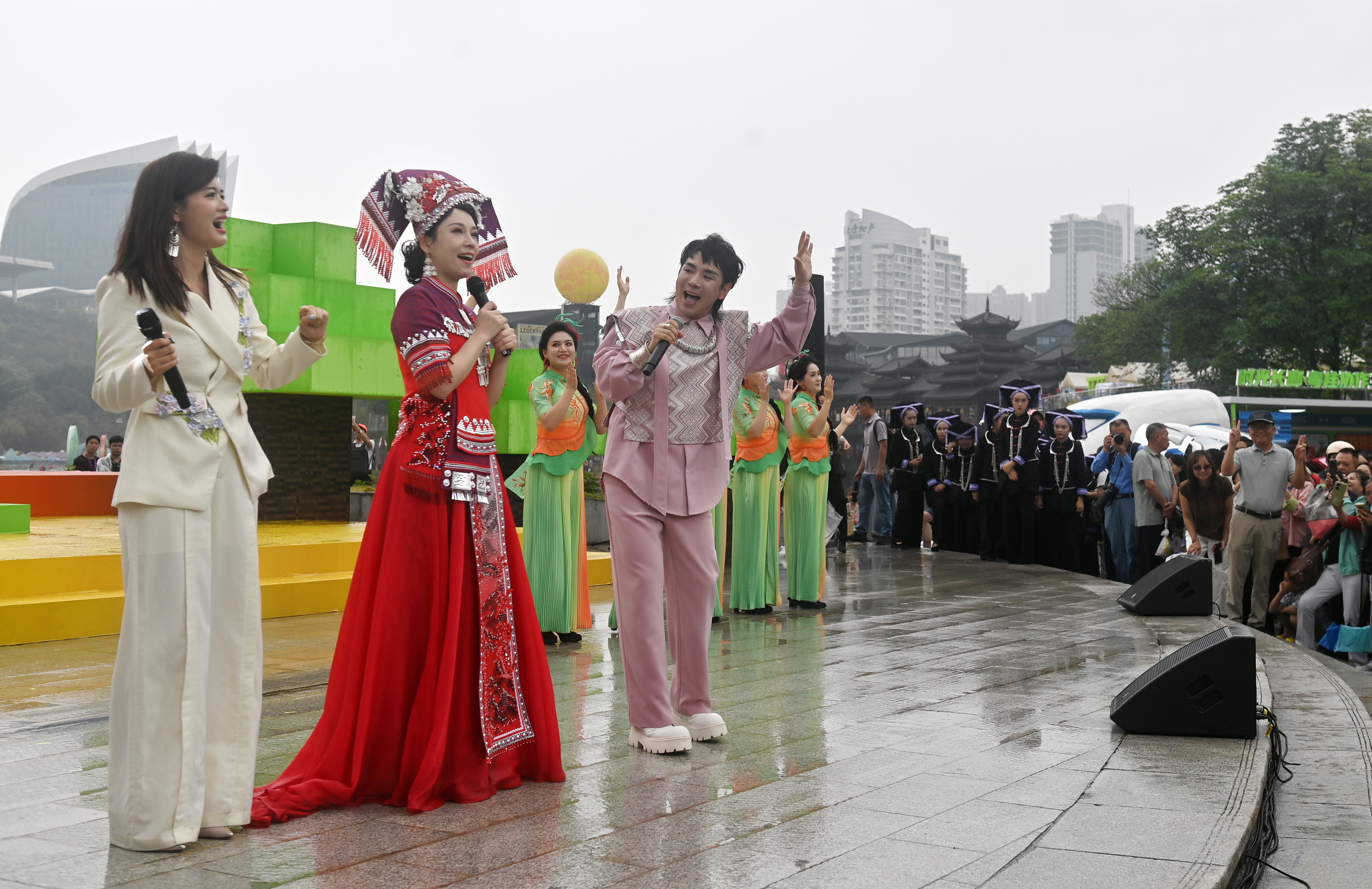 4月18日,广西南宁民歌湖,演员在2026年“广西三月三·八桂嘉年华”文化旅游品牌步履开幕式上扮演节目。新华社记者 陆波岸 摄