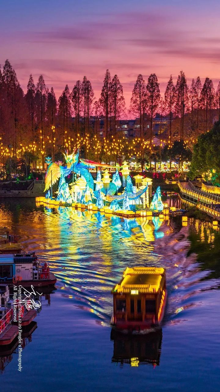 白鹭洲展区以明代古画《上元灯彩图》为创意中枢,修复六大主题区。通过传统花灯灯组、声光电当代科技技术以及NPC互动饰演的步地,重现明朝秦淮河边的荣华表象。