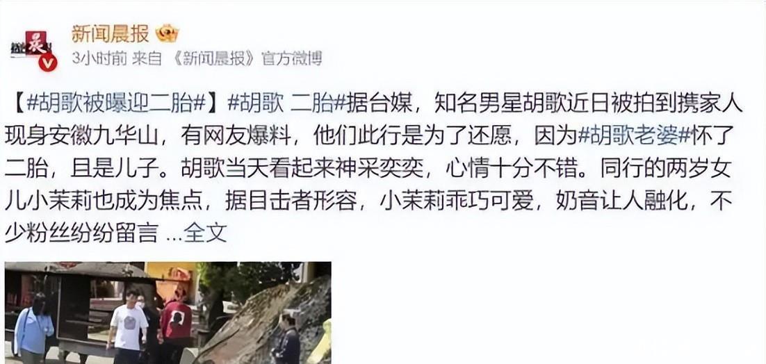 本年上半年的音信说,胡歌的浑家黄曦宁迎来了他们的第二个宝宝,照旧个小男孩。