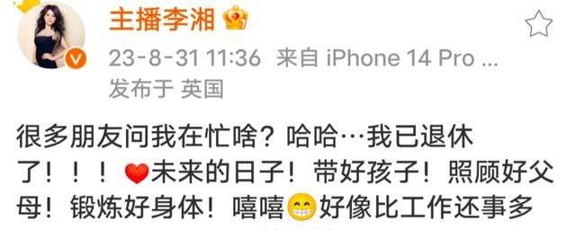旧年8月,李湘在微博发文宣称“我已退休了”,让不少网友朦胧,也曾明星中的带货一姐,仍是好久莫得直播带货了。