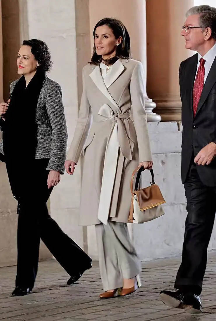 下装换成“西装裤”,又是出行相比病笃的场面,保举你平直选皮鞋,平稳干练,站几个小时也容易累脚。“西班牙王后”用高腰收腰的玄色大衣,搭配玄色西装裤,玄色皮鞋,千里稳又不失高档感和先锋感。
