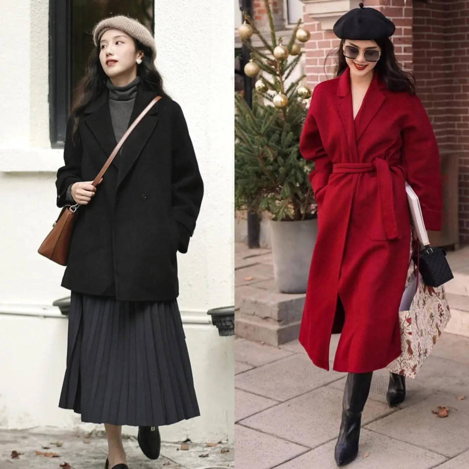 一件“玄色大衣”+“红色连衣裙”的零丁孤身一人穿搭够基础,也够经典,餍足日常持重场面出行穿搭。