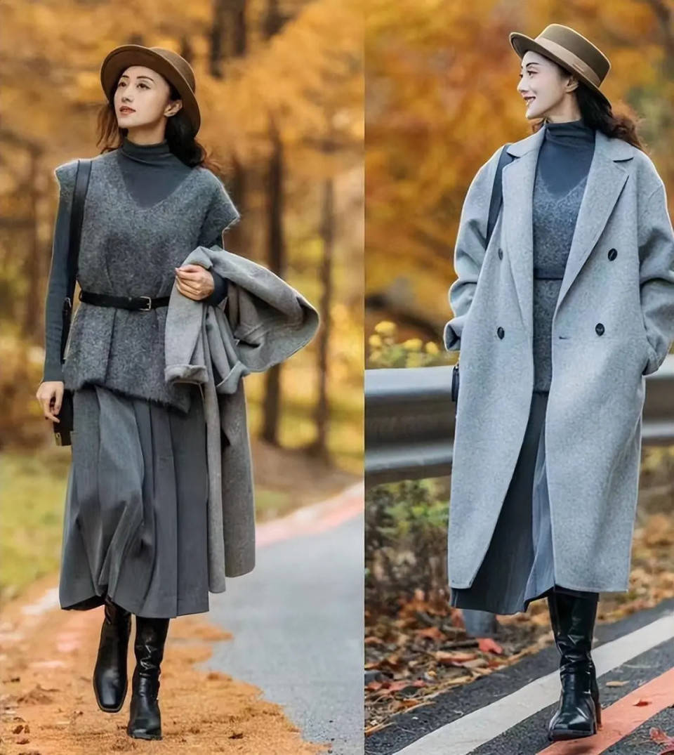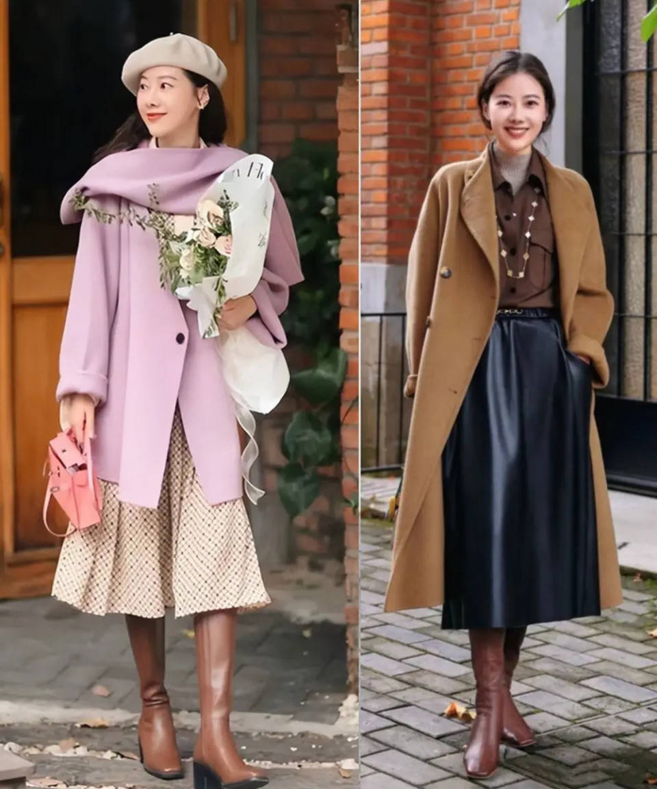 第二章节:作念到穿衣不紧身,不花哨,普通全球也不错高档斯文①:大衣+半身裙