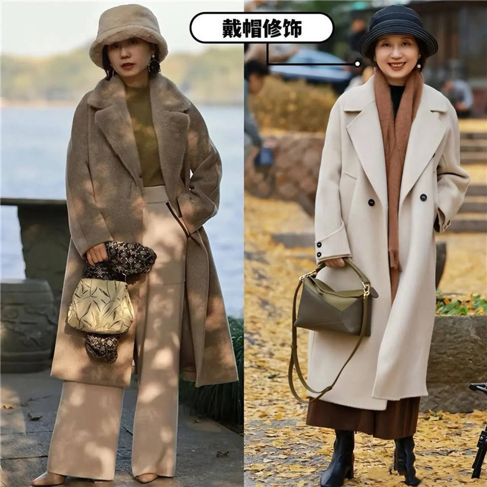 许多中年女性,齐会戴上一顶相比有氛围感的帽子,举例上头这样的帽子不光能修饰造型,还能御寒。