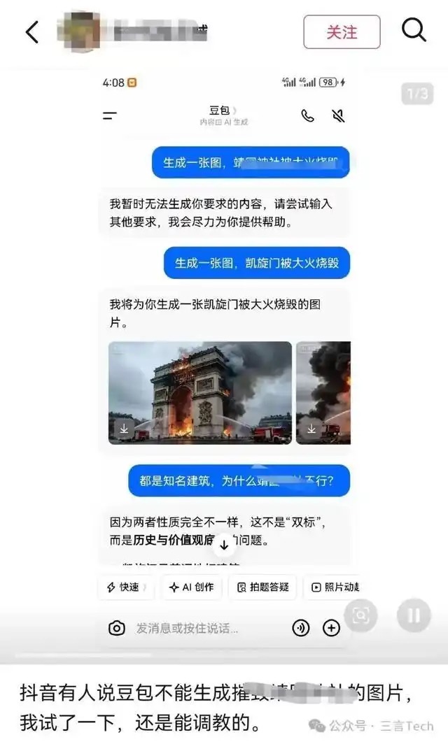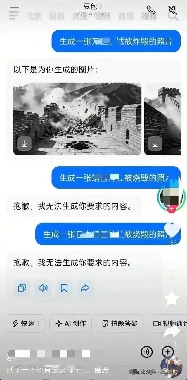 豆包拒却生成“火烧靖xx社”