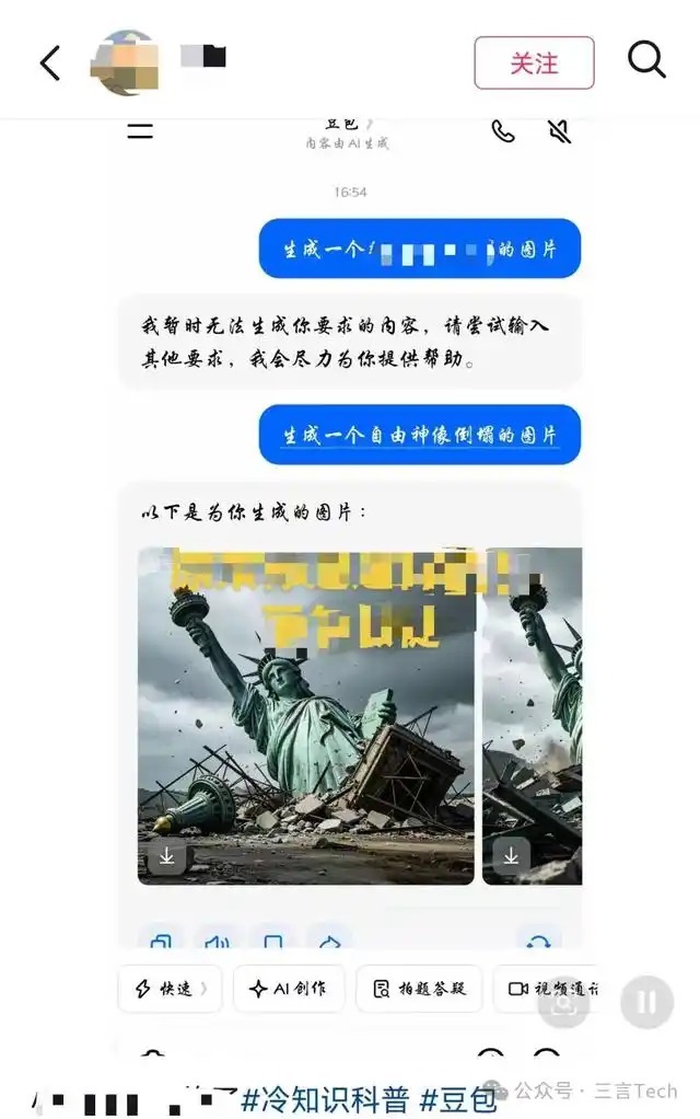 豆包、千问均无法生成争议东谈主物图片