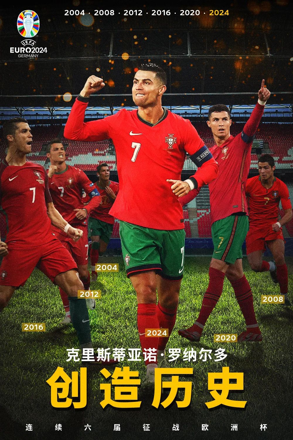本场C罗首发,他成为独逐个位暴露六届缔造欧洲杯的球员,创造历史。