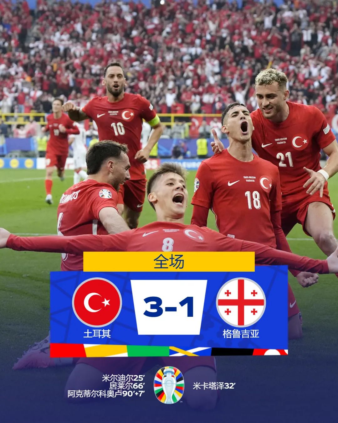补时第7分钟,包括门将在内,格鲁吉亚队全线压上。阿克蒂尔科奥卢在反击中推射佛门到手,将最终比分定格在3:1。